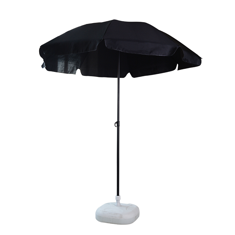 BEACH UMBRELLA 2M BLACK OUTDOOR UMBRELLA POLE:22/25 BLACK POWDER COATING FABRIC:140g POLYESTER FABRIC RIBS: 3.0MM STEEL RIBS PACKING:12PCS /CARTON PE BAG